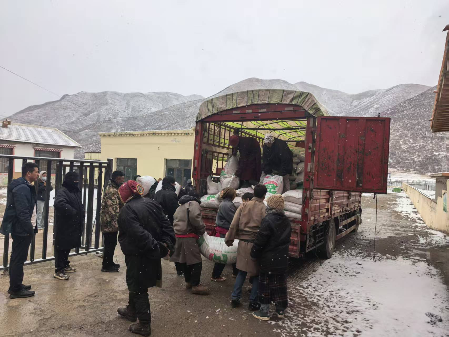 卸载饲料向牧民发放