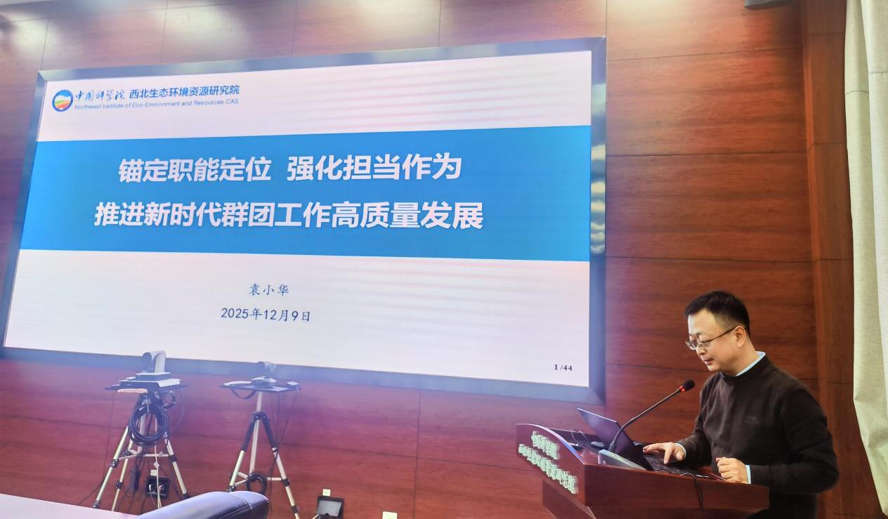 党委书记张长春参加会议并作专题报告,领学了习近平总书记在党的二十届四中全会上的重要讲话和全会精神,并结合个人学习思考,重点阐述了全会提出的“加快高水平科技自立自强,引领发展新质生产力”战略部署。他强调,群团组织负责人要立足服务科技创新中心职责,从搭建创新交流平台、强化青年人才培育、营造良好科研生态等关键维度发力,为抢占寒旱区生态环境资源工程领域科技制高点凝聚共识、汇聚力量。