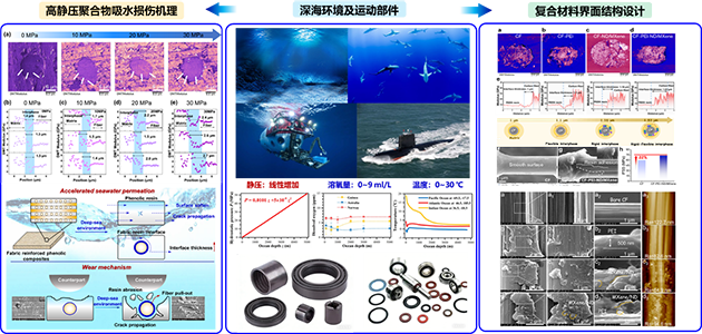 深海装备中的轴承、阀门、齿轮及轴套等关键运动部件,长期直接暴露于深海严苛环境服役,承受随深度线性快速增加的海水压力,导致聚合物润滑材料面临高压海水加速老化与复杂摩擦磨损耦合作用的严峻挑战。