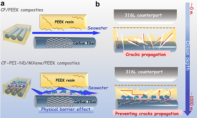 碳纤维织物增强聚合物复合材料具有优异的比模量与比强度,在深海应用中展现出巨大潜力。然而,与均相复合材料相比,其内部大尺度的连续纤维-树脂界面,在高压下易成为海水渗透与扩散的快速通道,制约了其在深海环境中的进一步应用。