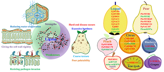 木质素作为植物次生细胞壁的关键成分,在果实生长发育与采后保鲜中发挥着双重作用。适量的木质素可为果实提供机械支撑、增强抗逆性并延长货架期,但过量积累则会导致果实质地粗糙、口感变差,严重影响其商品价值。因此,系统解析果实木质素的结构功能及调控机制,对果实品质改良与产业升级具有重要意义。