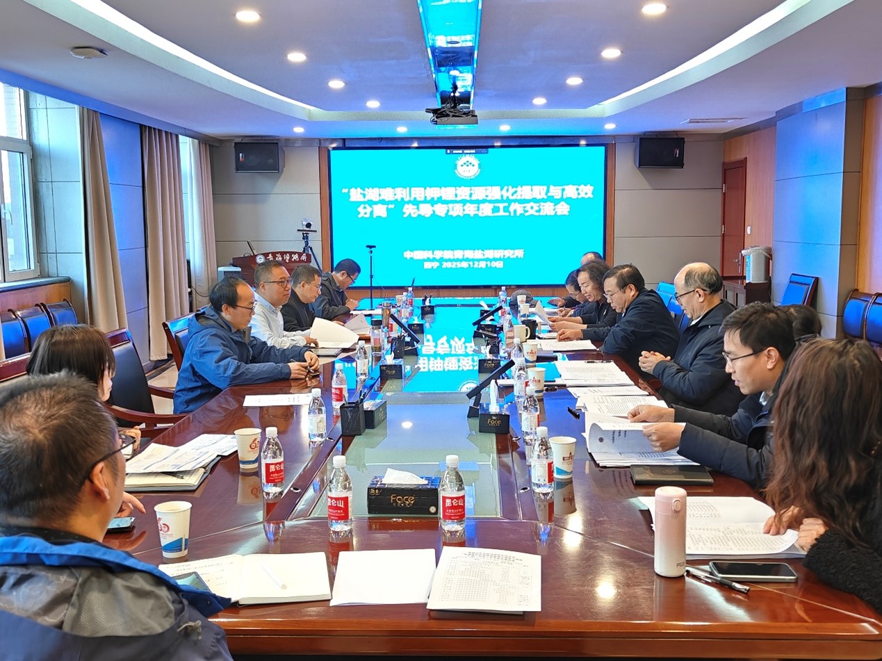 12月10日,中国科学院B类战略性先导科技专项“盐湖难利用钾锂资源强化提取与高效分离”2025年度工作交流会在青海盐湖研究所召开。本次会议旨在系统总结专项自立项以来的重要进展,评议阶段性成果,并为迎接阶段考核进行提前部署,确保专项高质量推进。