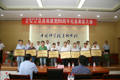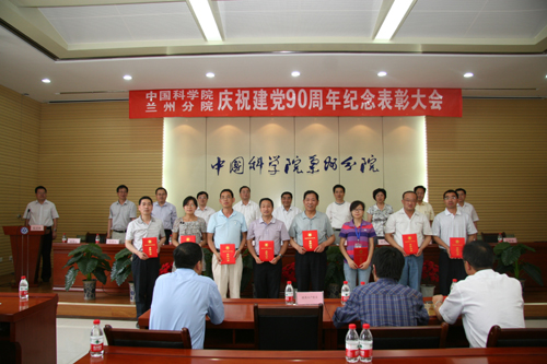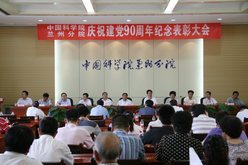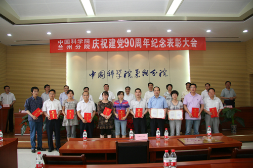 在中国共产党90年华诞来临之际,6月15日下午,兰州分院举行纪念中国共产党成立九十周年暨表彰大会。兰州分院院长程国栋院士及院属兰州、西宁各单位领导参加了会议。分院党组书记谢铭在大会上讲话,副院长杨生荣宣读了表彰决定,副院长杨青春主持大会。