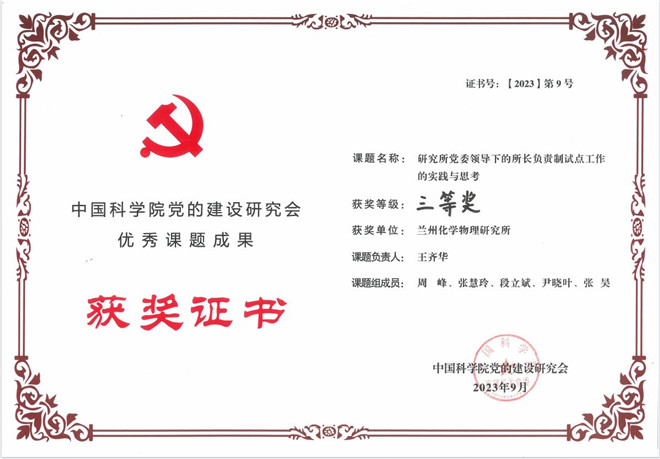 兰州化物所获中国科学院党建研究会2023年优秀课题成果三等奖
