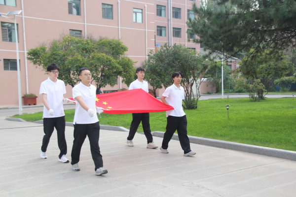 庄严肃穆 国旗飘扬:仪式伊始,国旗护卫队迈着整齐有力的步伐护送国旗入场。全体人员肃立,目光紧紧追随着鲜艳的五星红旗。当国歌激昂奏响,国旗缓缓升起,在场的职工和学生们齐声高唱国歌,向国旗行注目礼,每个人心中都充满了对祖国的崇敬与热爱之情。