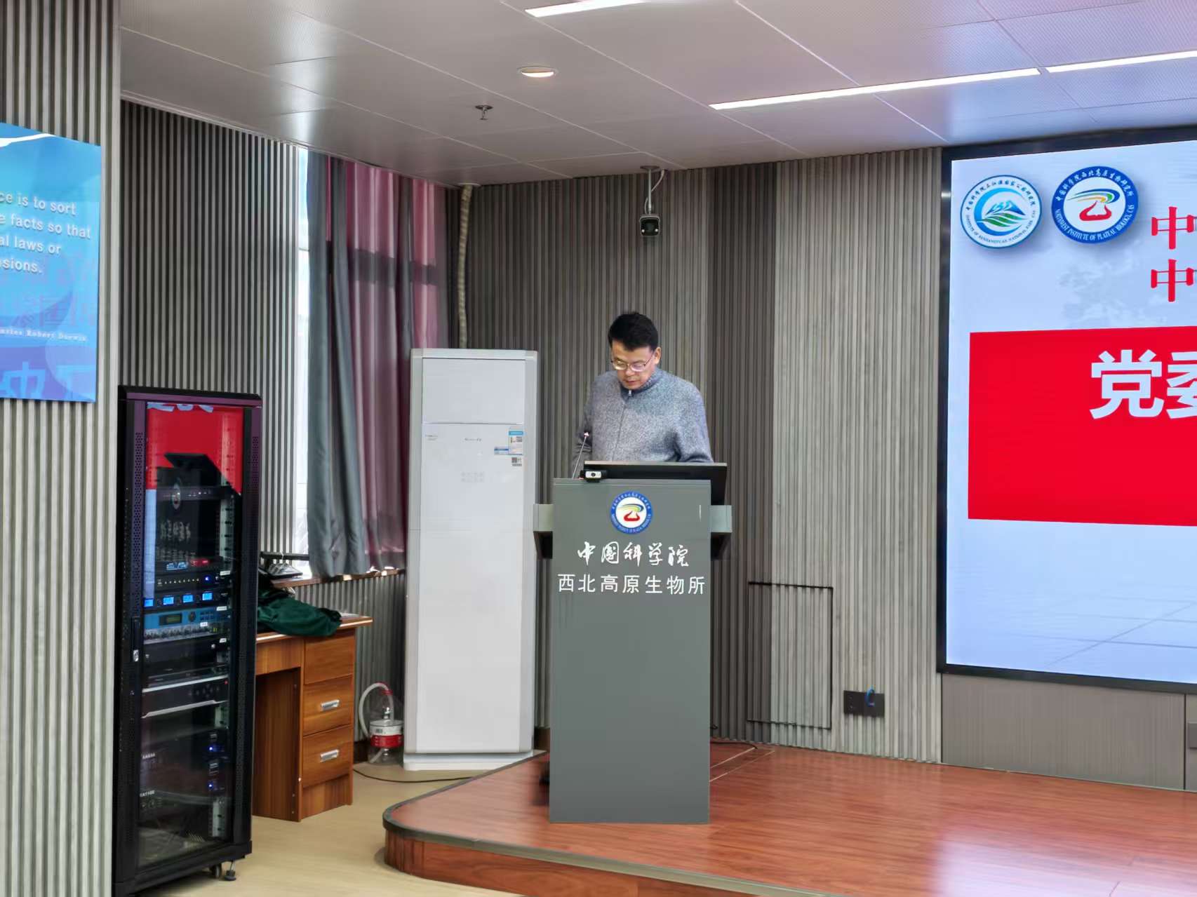 陈世龙作了《深入学习贯彻习近平总书记在党的二十届四中全会上的重要讲话和全会精神》党课报告,他从党的二十届四中全会概况、习近平总书记在党的二十届四中全会上的重要讲话和全会公报主要内容、党的二十届四中全会精神要点解读、中国科学院党组学习贯彻全会精神的部署要求和西北高原所党委学习贯彻全会精神的工作要求五个方面进行详细解读。他指出,党的二十届四中全会是在我国改革发展关键时期召开的一次重要会议,全会审议通过的相关文件,为新时代坚持和完善中国特色社会主义制度、推进国家治理体系和治理能力现代化指明了前进方向、提供了根本遵循。