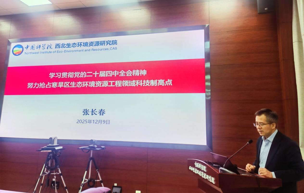 党委书记张长春参加会议并作专题报告,领学了习近平总书记在党的二十届四中全会上的重要讲话和全会精神,并结合个人学习思考,重点阐述了全会提出的“加快高水平科技自立自强,引领发展新质生产力”战略部署。他强调,群团组织负责人要立足服务科技创新中心职责,从搭建创新交流平台、强化青年人才培育、营造良好科研生态等关键维度发力,为抢占寒旱区生态环境资源工程领域科技制高点凝聚共识、汇聚力量。