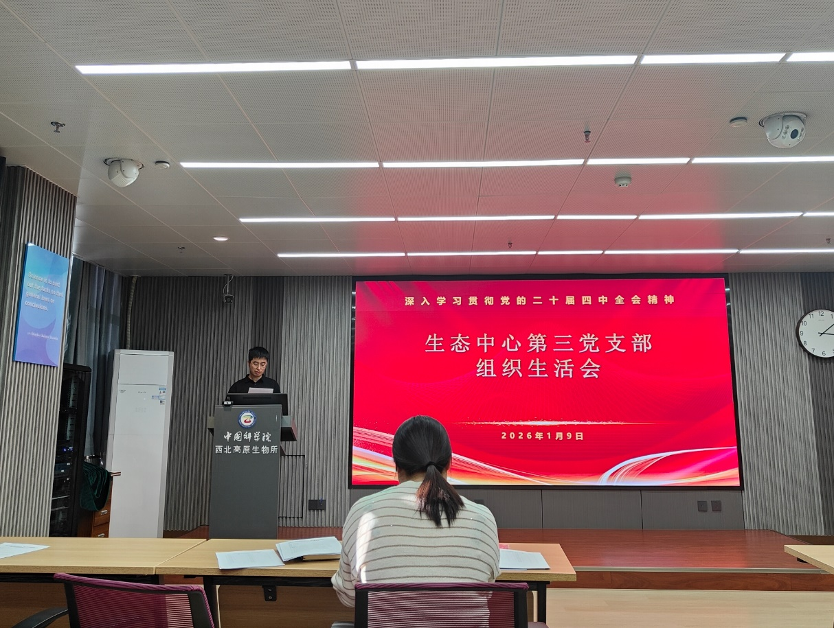 1月9日下午,中国科学院西北高原生物研究所生态中心第三党支部召开组织生活会深入学习贯彻党的二十届四中全会精神。会议由支部书记蔡振媛主持,党委委员、支部联系人徐世晓到会指导,支部全体党员、发展对象及入党积极分子参加。