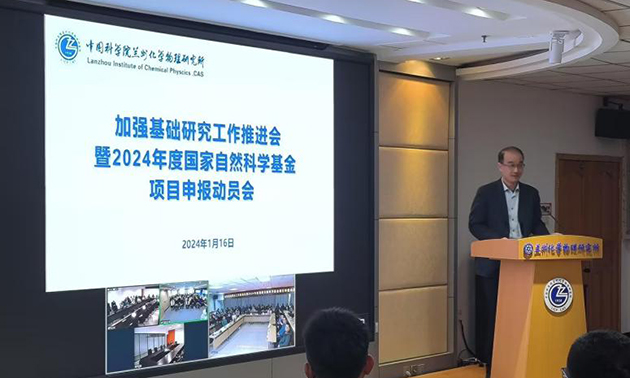 1月16日下午,中国科学院兰州化学物理研究所召开加强基础研究工作推进会暨 2024年度国家自然科学基金项目申报动员会,深入学习贯彻习近平总书记关于基础研究的系列重要指示批示精神、中国科学院党组相关要求,推进 2024年度国家自然科学基金项目组织申报工作。所长、党委副书记周峰出席会议,研究所青年科研骨干和科研与规划处相关人员参加会议。