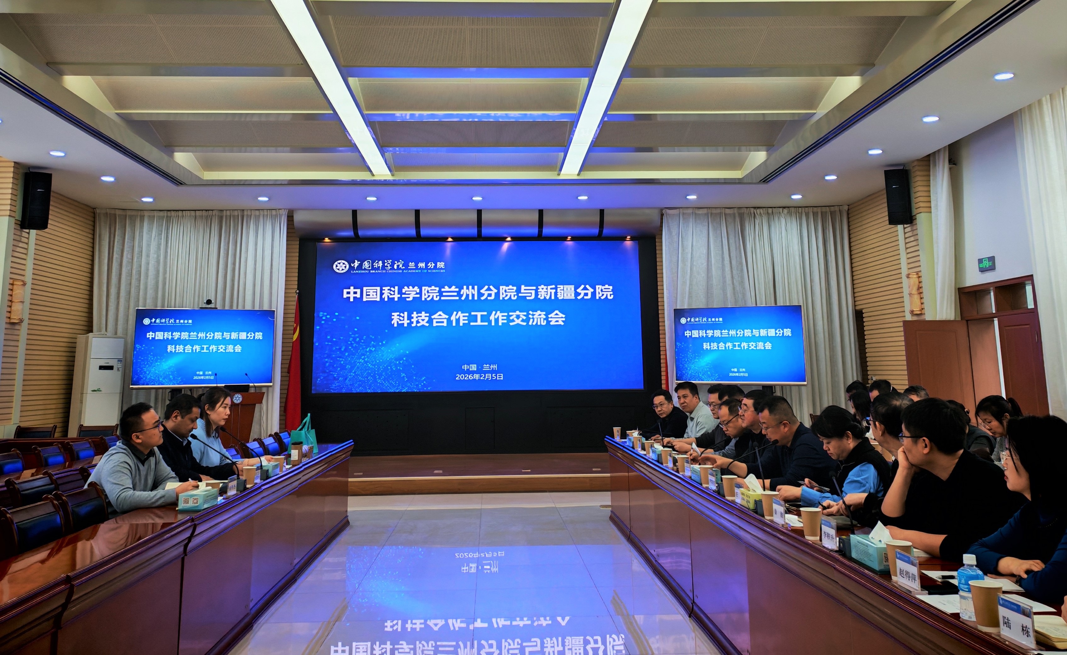 为贯彻落实中国科学院2026年度工作会议精神,推动跨分院跨研究所交流合作,促进分院系统研究所专利成果转移转化,2026年2月5日,兰州分院组织系统研究所与新疆分院在兰州进行科技合作交流。兰州分院副院长赵培庆、新疆分院副院长买吾兰江·买提努尔出席会议,兰州分院科技合作处、新疆分院科技合作处、兰州分院系统研究所成果转化部门相关负责人和相关领域科研人员等参加交流活动。