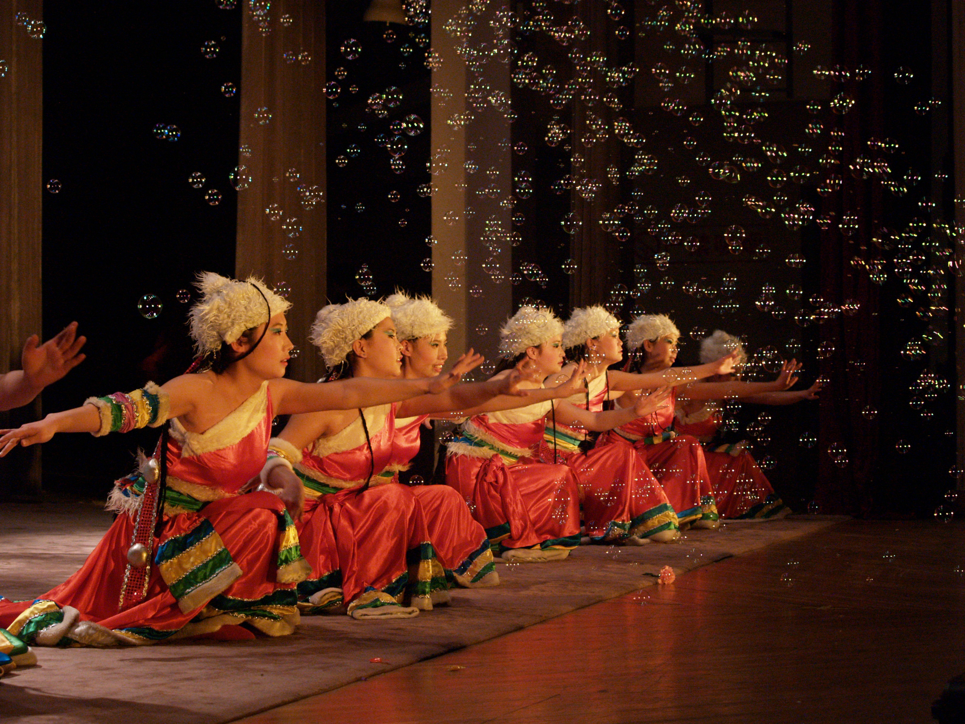 舞蹈是本次晚会的一大亮点,富有活力的街舞表演——big bang,踏着青春的鼓点,挥洒年轻的热情。不论是整齐有力的舞步,还是独特动感free style,还有滑稽的搞笑桥段,都是年轻人自己对生活的理解和表达。对这些没有一点街舞基础的研究生来说,练习、表演和释放都彰显出他们对生活的热爱!寒旱所选送的舞蹈《阿拉伯之夜》以极具新意的演出为观众提供视、听、感觉上的享受,让观众体验到阿拉伯文化的璀璨与厚重,从而更全面深刻地认知那些遥远而神秘的国度。图书馆兰州分馆的舞蹈《找情郎》,表演惟妙惟肖,生动地表现出火辣辣的激情和自信,塑造的形象深入人心。化物所的舞蹈《唐古拉之风》,动静结合,时而含蓄,时而奔放,表现了藏族人民直率豁达与虔诚的性格;来自青海盐湖所的《桔梗谣》轻快、明朗,生动地塑造了朝鲜族姑娘勤劳、活泼的形象。