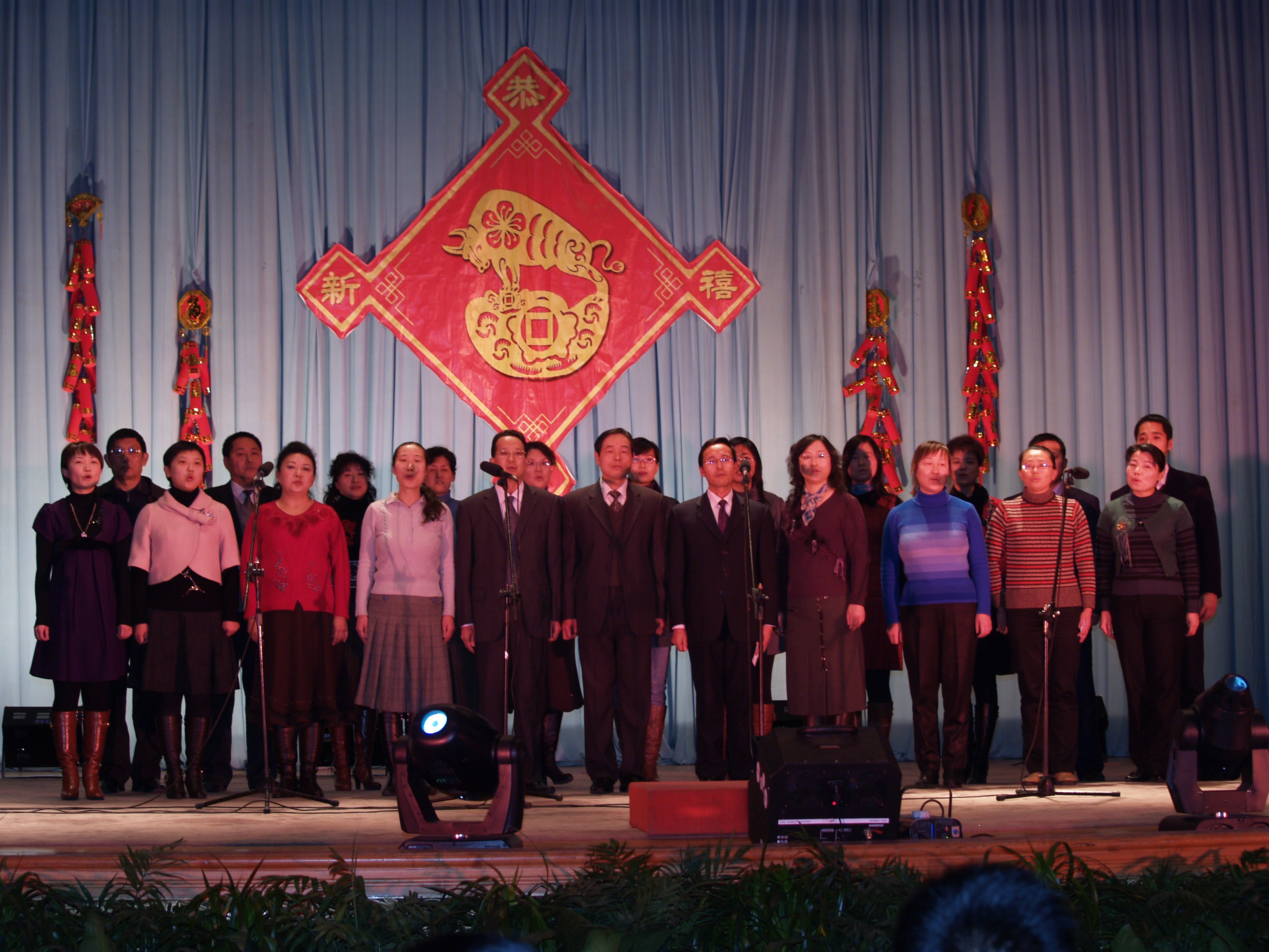 教育基地及各培养单位全体教育干部也首次为大家带来了合唱《年轻的朋友来相会》与《歌声与微笑》,全体教育干部在年终繁忙的工作中,抽空排练,为大家奉献优美的歌声,熟悉的旋律引起了场内极大的共鸣,成为本场晚会的一大闪光点。