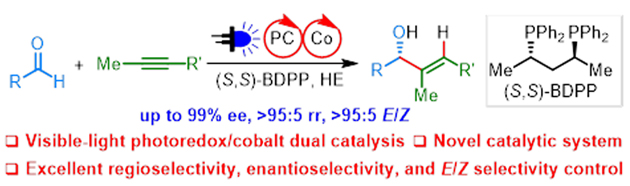 中国科学院兰州化学物理研究所羰基合成与选择氧化国家重点实验室夏纪宝研究员团队致力于羰基偶联反应的研究。近日,该团队首次实现了可见光/钴协同催化的炔-醛不对称还原偶联反应。