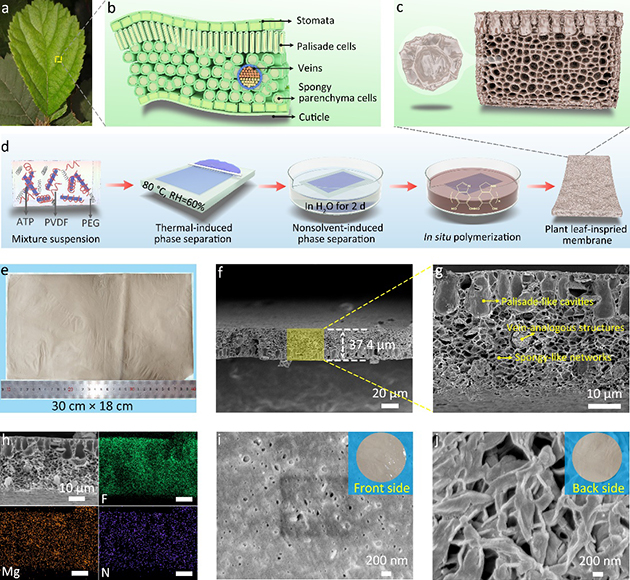 图1. 仿树叶结构凹凸棒石/聚合物复合隔膜的制备及表征
