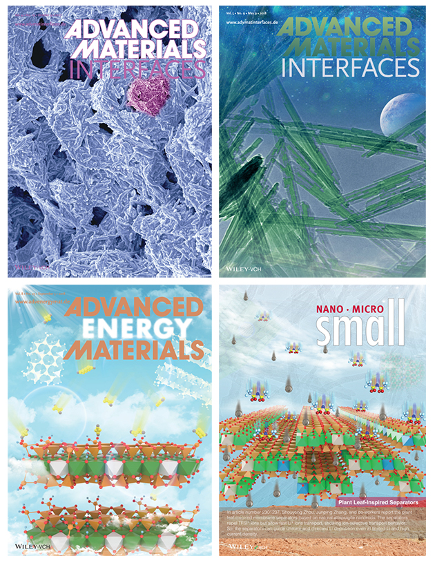 该团队以黏土矿物、有机硅化学为基础,与特殊润湿性表面和电催化等领域交叉,制备了一系列性能优异的锂电池隔膜;研究了其与电解液之间的固-液界面相互作用,获中国发明专利授权4件。与超疏液表面等领域交叉,探索了隔膜的超疏水性对电池性能的影响,提出了超亲电解液锂电池隔膜的概念(iScience 2019, 16, 420...);研究了锂皂石、凹凸棒石等不同微观结构黏土矿物改性隔膜对电池性能的影响及其作用机制(Adv Energy Mater 2018, 8, 1801778(封面);J Colloid Interface Sci 2022, 614, 593...);针对黏土矿物在隔膜中的应用缺陷,设计了金属-氮修饰的黏土矿物纳米材料改性隔膜,揭示了其在电池中的电催化机理(Chem Eng J 2023, 451, 138914);针对陶瓷隔膜中涂层易脱落等问题,采用原位聚合、液流诱导排列技术等制备了系列具有良好机械强度的多功能锂电池隔膜(J Mater Chem A 2020, 8, 3692;Energy Storage Mater 2021, 37, 135;Mater Today Energy 2020, 16, 100420)。