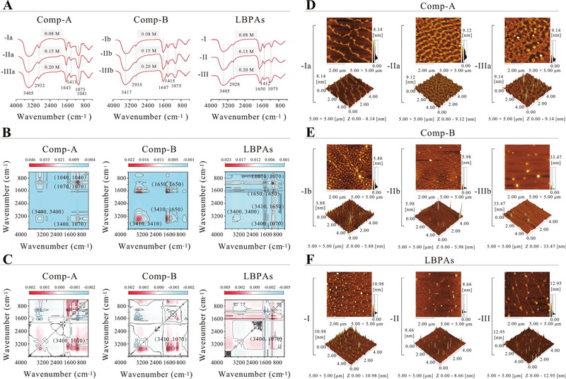 图3 枸杞果胶组分 A、组分 B 及总果胶组分的官能团与形态特征