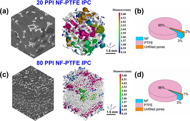 图1. 泡沫镍-聚四氟乙烯互穿相复合材料孔隙率分析