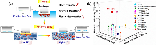 中国科学院兰州化学物理研究所润滑材料全国重点实验室聚合物摩擦学课题组,以三维连续金属骨架为增强相,以研制聚四氟乙烯树脂细粉或乳液为基体,采用液相浸渍、热烧结制备泡沫金属-聚四氟乙烯互穿相复合材料,通过结构参数调控、基体改性、界面构筑和基体/界面协同改性方法,拓展了泡沫金属-聚四氟乙烯互穿相复合材料在润滑领域的功能化应用。
