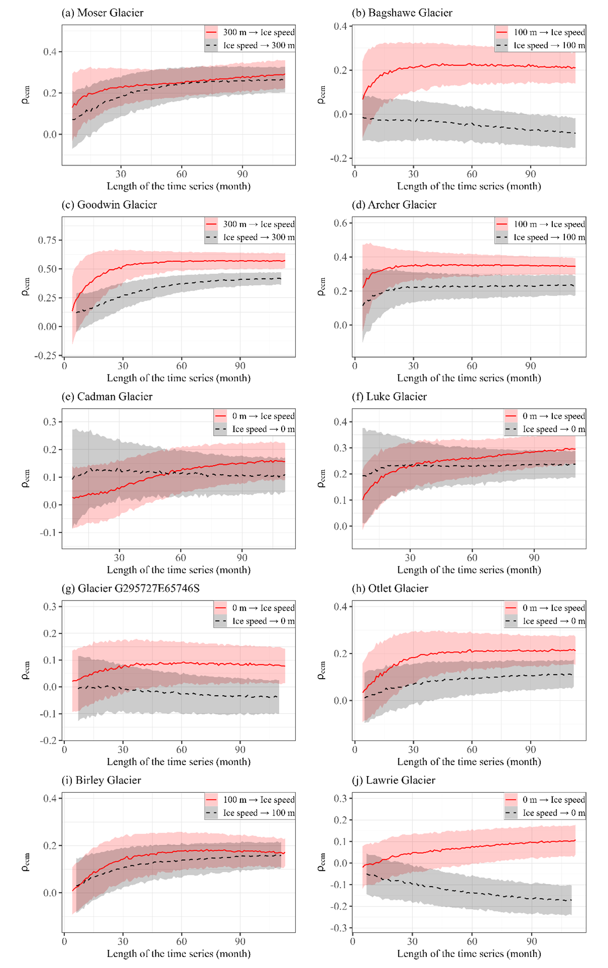 通过CCM模型分析不同深度海温对冰川流速的影响
