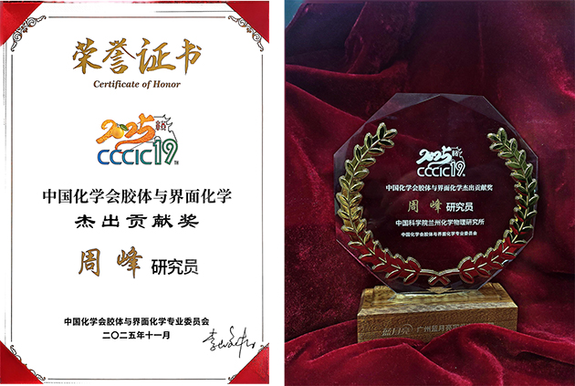 兰州化物所周峰研究员荣获中国化学会胶体与界面化学杰出贡献奖