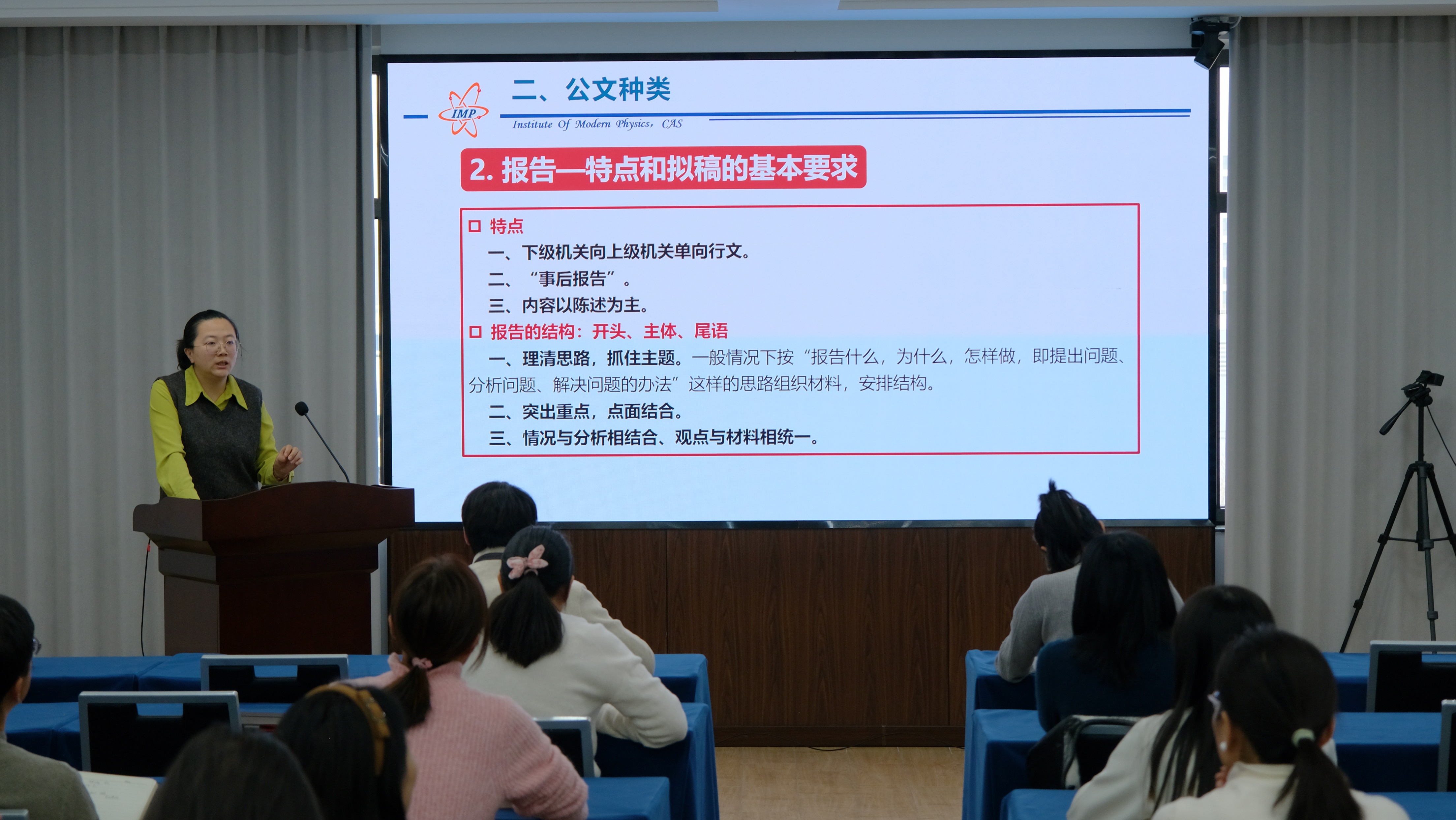 近日,为进一步提升研究所公文处理工作的标准化与规范化建设,全面提升公文写作与管理水平,中国科学院近代物理研究所组织举办了公文处理专题培训。