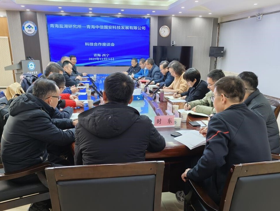 12月24日,青海中信国安科技发展有限公司总经理何汪海一行到青海盐湖所开展需求对接。青海盐湖所副所长(主持工作)郑诗礼、党委副书记、副所长王建萍、副所长冯海涛参加座谈。