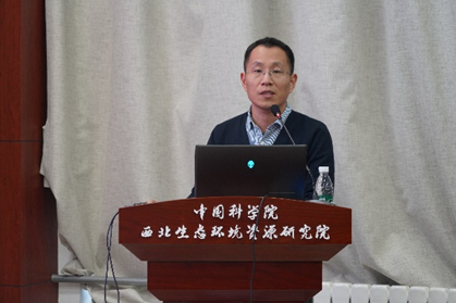 中国工程院院士、西北研究院院长冯起主持会议,项目跟踪专家郭正堂院士在线参会。专家组成员王苏民研究员、卢琦研究员、张元明研究员、孙福宝研究员、车慧正研究员、杨保教授、黄春林研究员、李唐艳高级经济师及国家自然科学基金委员会高技术研究发展中心、中国科学院可持续发展研究局地球与资源处、甘肃省科技厅社会发展处和西北研究院科研处的相关领导参会。项目组科研骨干、研究生列席会议。