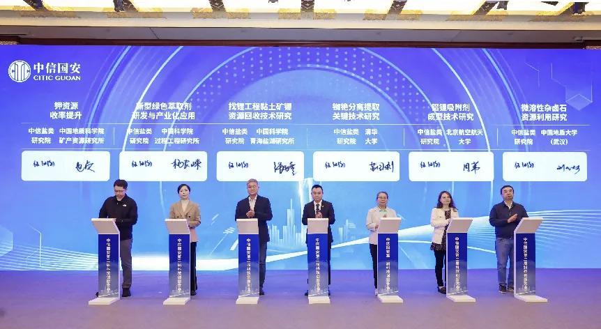 会议期间,中信盐类研究院围绕6项“揭榜挂帅”科研项目,与青海盐湖所、中国地质科学院矿产资源研究所、中国科学院过程工程研究所等6家单位签署科研合同。盐湖地质与环境实验室主任张西营代表青海盐湖所签署了科研合同。