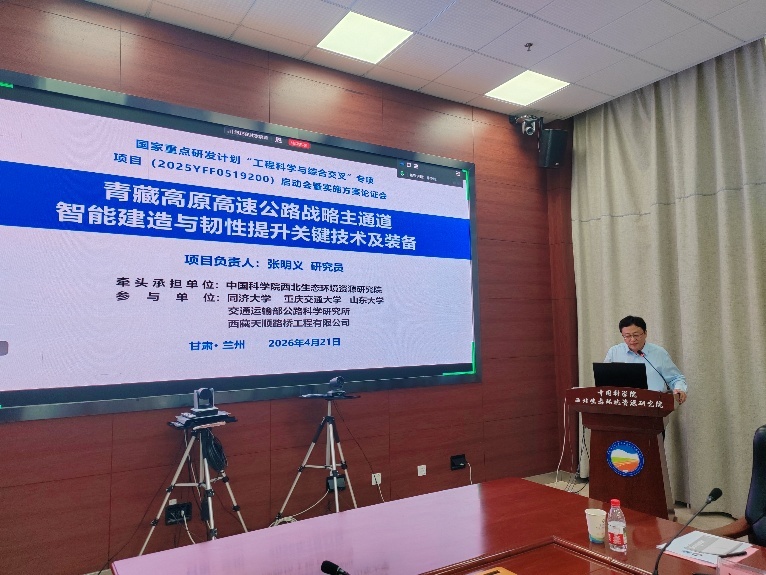 4月21日,中国科学院西北生态环境资源研究院承担的国家重点研发计划“工程科学与综合交叉”重点专项“青藏高原高速公路战略主通道智能建造与韧性提升关键技术及装备”项目启动会暨实施方案论证会在兰州顺利召开。