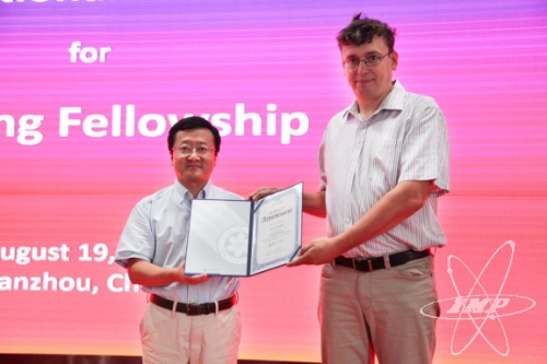 8月19日下午,近代物理所副所长赵红卫代表中国科学院,为德国GSI的Yuri LITVINOV博士颁发了“中国科学院国际人才计划(PIFI)—国际访问学者”证书。