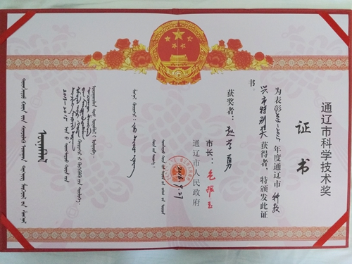 西北研究院赵学勇获通辽市“科教兴市特别奖”