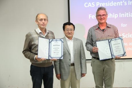 近代物理所为德国Aleksandr VOYTKIV教授和Stefan SCHIPPERS教授颁发中国科学院“国际访问学者”证书