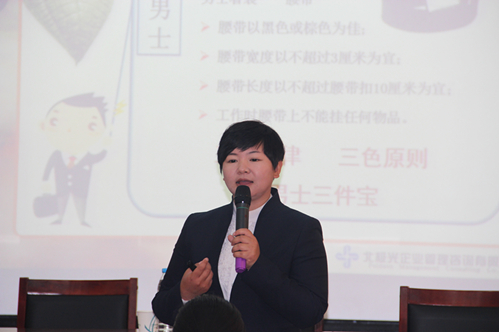 随后,礼仪培训教师刘慧以“职场工作礼仪”为题,从男女不同的性别特征出发,指出了具备良好工作礼仪对于管理工作的重要性;详细讲解了在不同工作环境中,管理工作者需要注意的仪容仪表与穿戴礼仪细节,为参训学员普及了相关常识。
