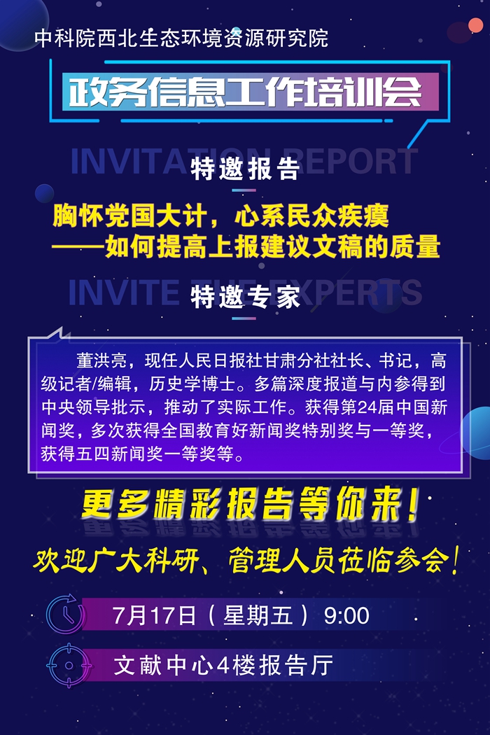 西北研究院政务信息工作培训讲座预告