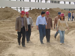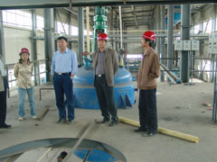 青海盐湖提锂及资源综合利用国家高技术产业化示范工程是中国科学院和青海省的重点建设项目,在中国科学院和青海省委、省政府的大力支持下,经过青海盐湖所和青海锂业有限公司职工几年来艰苦创业,在气候恶劣、条件极其艰苦的无人区建起了东台盐湖产业化生产示范基地。锂业公司负责人李增荣、王敏、庞全世在现场分别向马培华副省长详细介绍了产业化项目建设进展情况,随后,马培华副省长视察了东台基地水、气、电设施和碳酸锂、硫酸钾车间等工程设施。马培华副省长对工程建设所取得的成绩给与了充分肯定,并代表青海省委、省政府表达了对该产业化项目建设的关心和支持,对奋斗在工程建设一线的青海盐湖所和青海锂业有限公司职工表示慰问,希望青海盐湖所的科研人员及青海锂业公司的职工继续发扬艰苦奋斗的精神,团结合作,尽早使东台产业化项目的试车投产。