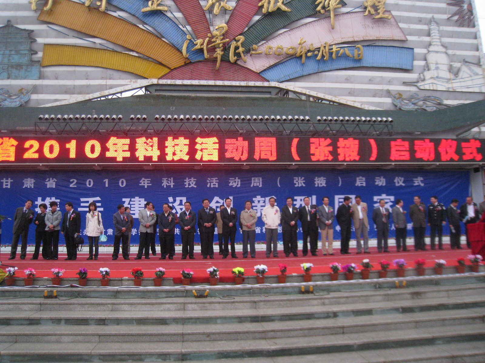 5月15日上午,甘肃省2010年科技活动周启动仪式在张掖市甘州区中心广场隆重举行,启动仪式由张掖市人民政府副市长省董永芳主持,甘肃省人民政府副省长郝远、张掖市市委书记陈克恭、张掖市市长栾克军等省市领导以及中科院兰州分院党组书记王学定、常务副院长王学定、院长助理张健出席了启动仪式。参加启动仪式的有甘肃省科技厅、省委宣传部、省科协、省公安厅、兰州分院等部门的领导及张掖市各界群众及学生约2000余人。