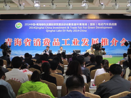 6月11日上午9时,2014中国•青海绿色发展投资贸易洽谈会——青海省消费品工业发展推介会在青海天年阁饭店隆重召开。会议由青海省经济信息化委员会主办,国家工业和信息化部消费品工业司司长王黎明,青海省委秘书长沈何,青海省经济和信息化委员会巡视员李小松,西宁市建设局局长王青以及西宁市、海东市、海西州、海南州、海北州、黄南州、果洛州、玉树州人民政府领导,中国科学院西北高原生物研究所副所长魏立新,青海雪域中藏药饮片加工有限公司董事长陈杰等70余家单位代表和新闻媒体记者共计200余人参加了本次会议。