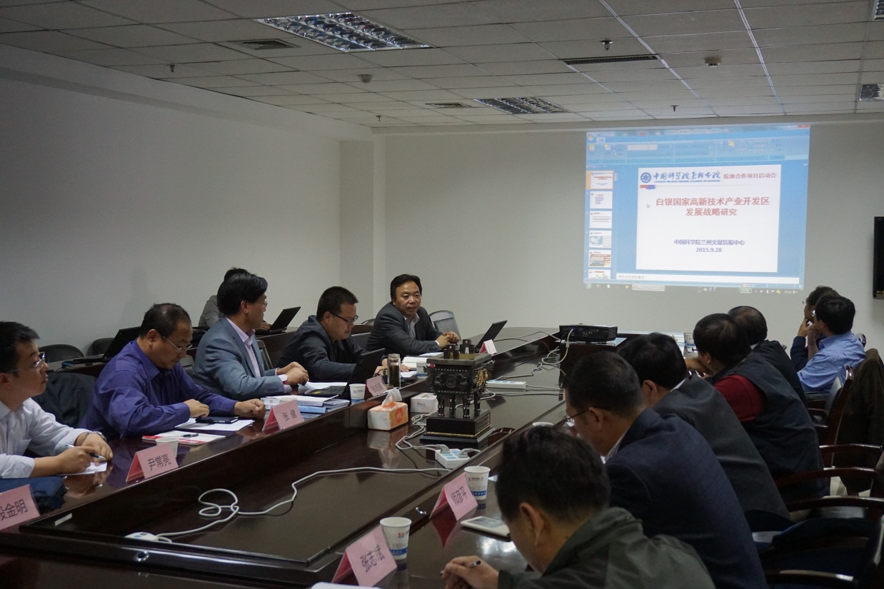 张志强要求项目组,一要从大处着眼,深入观察把握发展大形势,国际、国内、区域视角相结合,充分看到变化、挑战、竞争和机遇;二要从实处着手,深入分析弄清发展的现状基础与背景条件,总结过去“8+5年”院省级和国家级高新区发展的经验教训,挖掘观察未来发展空间;三要从细处着手,前瞻思考规划提出发展战略和政策建议,从定位与战略、规划与布局、创新产业与创新集群、政策建议与管理创新等方面,为白银国家高新技术开发区未来创新跨越发展提供决策支撑。