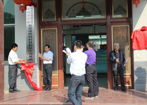 张金初、段东平、支洋波和肖学英代表双方进行了“新型镁质胶凝材料工程技术联合研究中心”和“新型镁质材料及制品中试基地”的揭牌。揭牌仪式结束后,来宾参观了板材生产线和新型海工镁水泥试验场地。