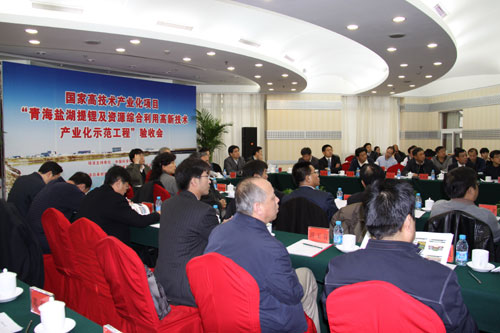2009年12月11日,由中国科学院和青海省政府共同主持的国家高技术产业化项目“青海盐湖提锂及资源综合利用国家高技术产业化示范工程”在北京通过验收。这标志着我国高镁锂比盐湖提锂技术成功实现产业化,青海盐湖资源综合开发利用取得重要成果。多年来,中国科学院青海盐湖研究所科研人员坚持不懈、克难攻坚,以解决盐湖锂的提取和资源综合利用开发为切入点,研究开发了具有自主知识产权、适合我国高镁锂比盐湖卤水的锂盐生产工艺路线和配套的资源综合利用工艺和技术并成功实现了产业化。
