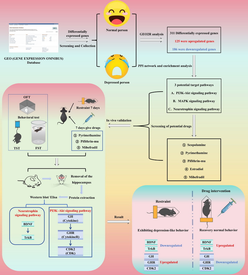 抑郁症作为全球高发的精神疾病,现有治疗手段存在疗效有限、副作用显著等问题 —— 仅30%-40%患者能通过现有抗抑郁药获得缓解,且新药研发周期长、成本高。过往研究虽借助生物信息学工具筛选过神经精神疾病候选药物,但多缺乏“计算机预测 -体内验证”的系统框架,导致药物转化效率较低。