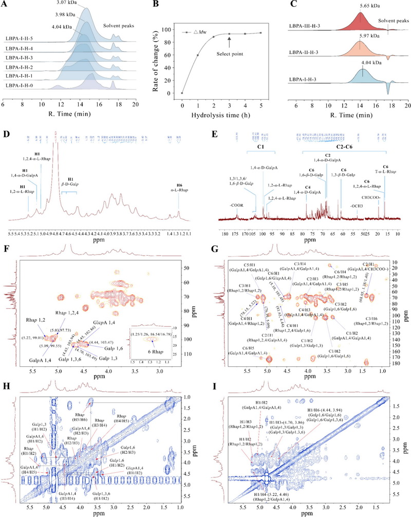 针对制约枸杞产业发展的果胶类多糖研究关键科学问题,中国科学院西北高原生物研究所青海省藏药药理学和安全性评价研究重点实验室团队,通过多级色谱分离、一维/二维红外光谱、一维/二维核磁共振波谱、原子力显微镜、扫描电镜等多技术联用,首次在枸杞来源的果胶多糖中发现并阐明了一种全新的“糖支架-网络”结构。其核心突破在于首次揭示了阿拉伯半乳聚糖-II(AG-II)结构域的双重分子构型:它不仅作为鼠李半乳糖醛酸聚糖-I(RG-I)骨架的共价侧链,更能以自主结构域的形式独立存在。